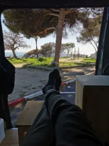 Insgesamt ist die Küstengegend – wie sollte es auch anders sein – sehr touristisch. Mit dem Auto kommt man nicht überall gut hin, und Parken ist oft schwierig. Also blieb ich einfach hier. Schlafen werde ich wohl unten im Ort, da die Straße hier doch gut befahren ist. Aber morgen früh bin ich als Erster da. 😉 Zum Frühstücken.