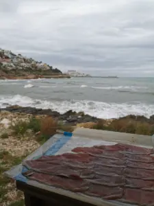 Der nächste Tag startete grau, also kurz den Calisthenics-Bereich am Strand genutzt, dann weiter zur Cala Crancs – Stranddusche, Frühstück, fertig. Als der Regen einsetzte, zog ich weiter nach Peñíscola. Keine Ahnung, wie der Name der Stadt entstanden ist (ich hab’s sicherheitshalber nochmal gegoogelt 😅), aber sie diente als Kulisse für einige Filme, unter anderem Game of Thrones.