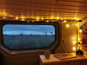 Trotzdem war ich kurz vor 5 Uhr wach und fuhr zurück zum Parkplatz oberhalb des Meeres. Da lachte noch das Sportgerät und wartete geduldig auf mich. Also erstmal eine kleine Runde laufen, ein bisschen dehnen und zum Schluss wenigstens ein paar Klimmzüge – langsam angehen lassen, will den Körper ja nicht schocken. 😄 Nach den letzten Tagen fast nur im Sitzen merkt man das doch ziemlich. Das Ganze fand noch in nächtlicher Dämmerung unter einem Sternenhimmel statt. Danach gab’s Tee und zum Sonnenaufgang meine Haferflocken mit allerlei Zeug, das da so bei mir reinkommt. 😉