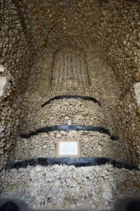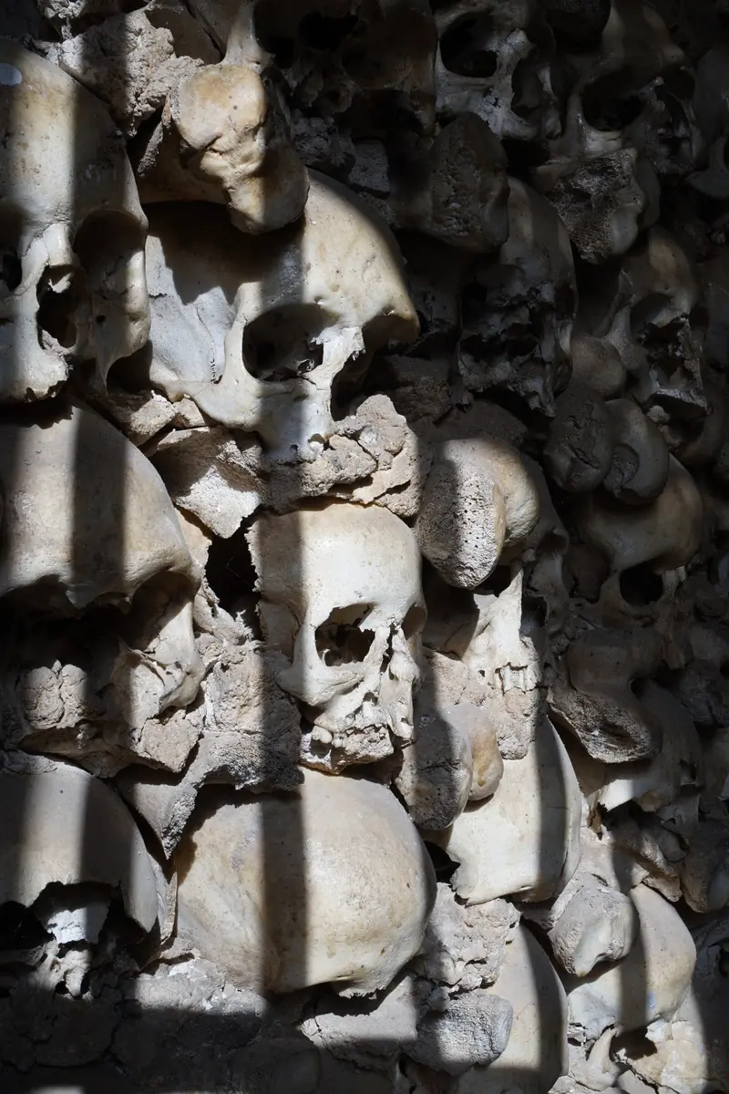 Weil ich noch wusste, dass es in Alcantarilha einen SB-Car-Wash gibt, hab ich dort kurz angebremst und mal den Lulatsch gewaschen. Danach gab’s einen Schattenparkplatz bei Aldi (alles mit Solarpanel – das ist doch mal was!) und von dort aus einen Abstecher zu Fuß zur „Knochenkapelle“.